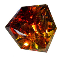 This gem displays distinct red, orange and yellow hues. The fiery, almost metallic internal apperance of the stone is seldom seen in any other gems.
